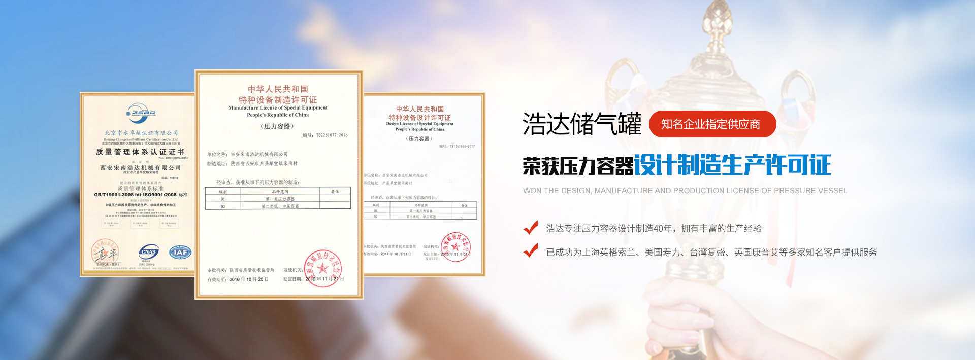 西安宋南浩達(dá)機(jī)械有限公司是陜西首批取得壓力容器制造許可證的廠家,是陜西省定點(diǎn)生產(chǎn)壓力容器的專(zhuān)業(yè)工廠,現(xiàn)有近40年的制造歷史。